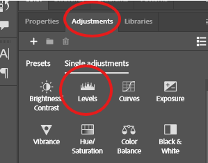 - Adjust Levels. This is in the Adjustments panel and will create a new layer.