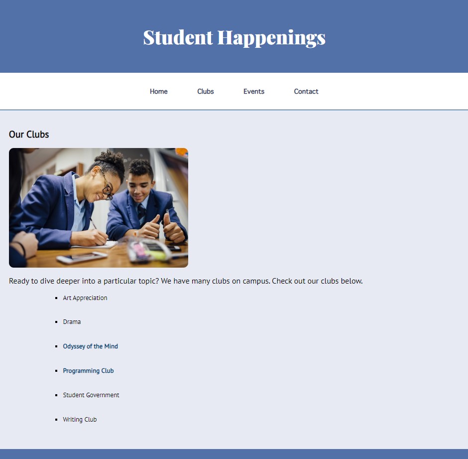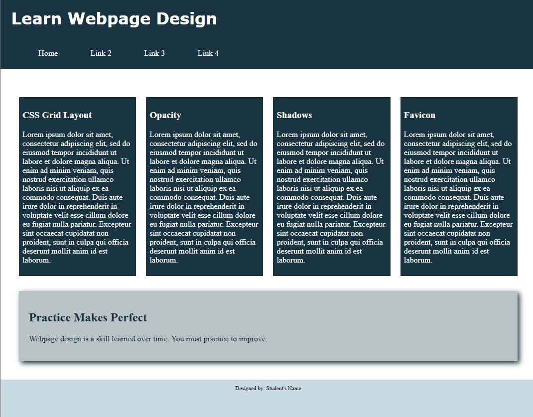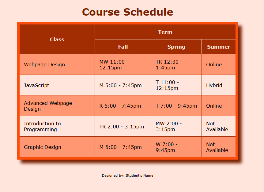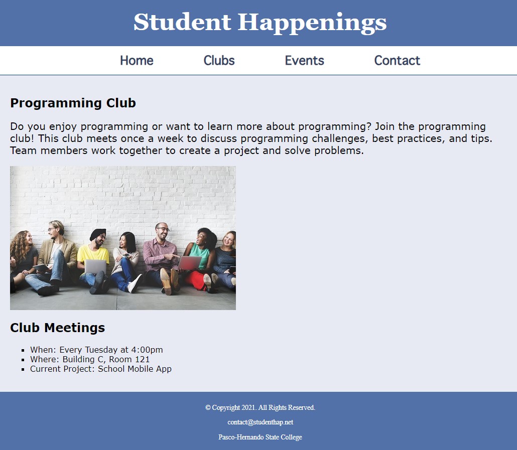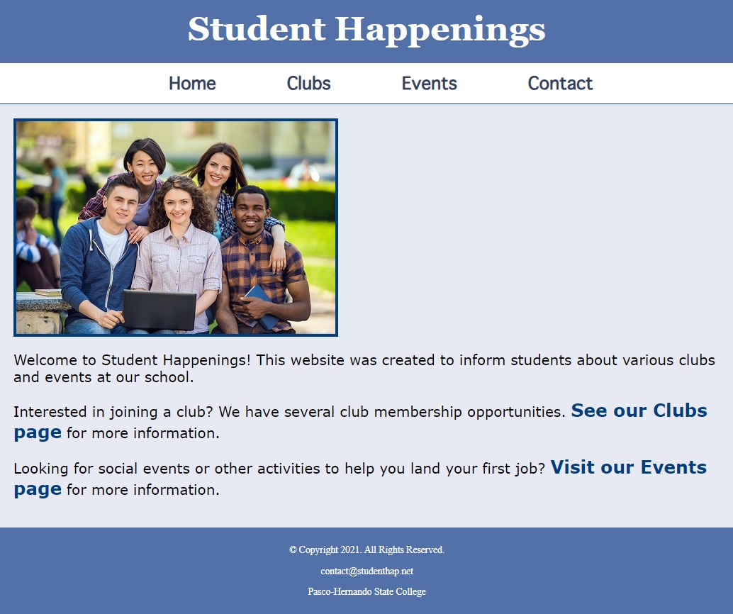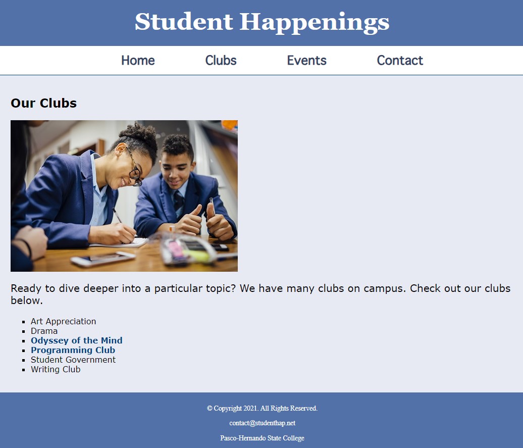- Saved in the student folder inside the lab2 folder. The index page is required. The books says you can add whatever pages you want. However, use the examples below.