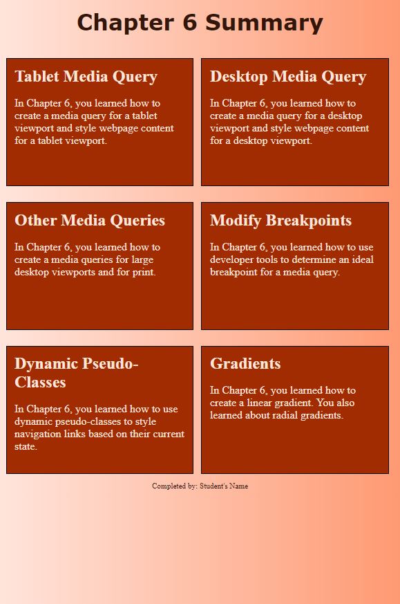 Copy the complete Chapter 5 files so you have the correct code to begin chapter 6