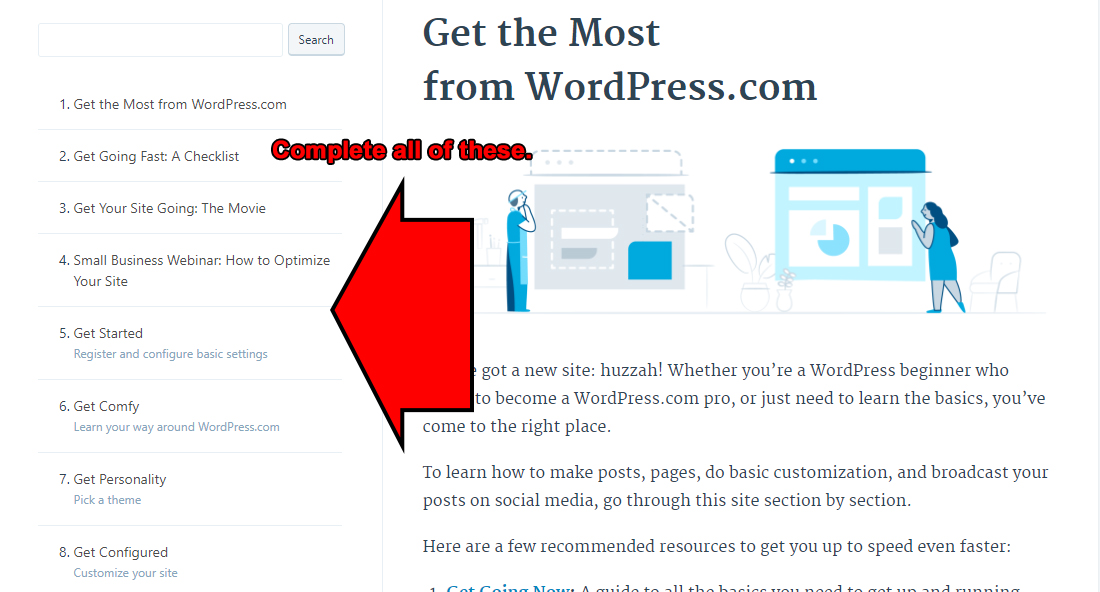 - Read through all of this so you are familiar with it, most of the customization will be done later. You do need to pick a new theme.