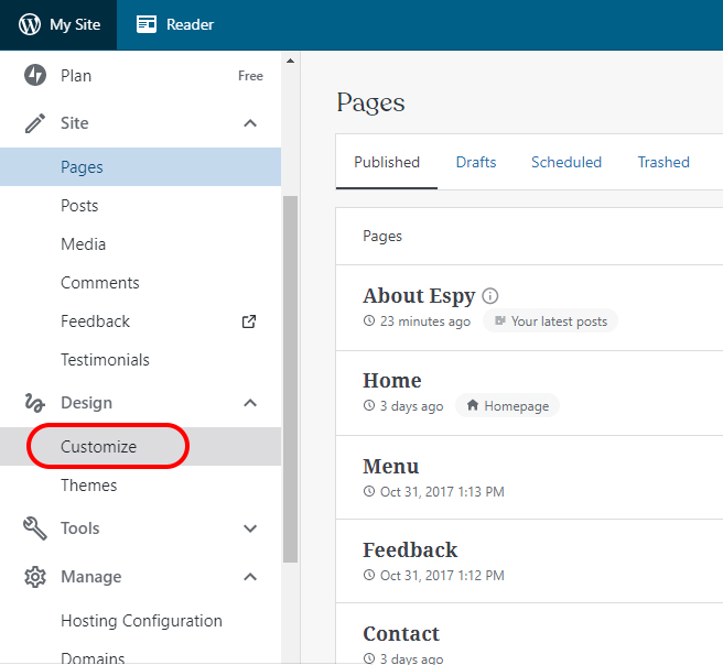 - In the Creating Pages section you are going to create one new page. Currently, the post you just created should be on the bottom of your homepage. You're going to create a page to contain your blog posts. https://wordpress.com/support/pages/#creating-a-blog-page