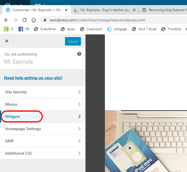 - Also create/install a custom site icon...favicon. This is inside the Site Identity area ins the Customize Tab. You need to show me this. Send me an email telling me you are done so I can look at your site. DUE: 4/24/20