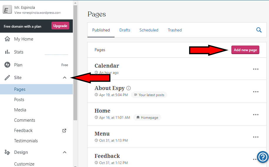 - Make sure you go to the link in the reading, https://wordpress.com/support/pages/. We are more concerned about pages than posts. You are not making a blog. However, follow the directions and create a blog post me. Show me for credit. DUE: 5/1/20