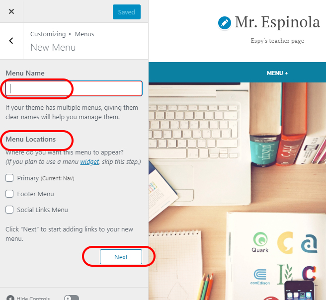 - From this point, follow the onscreen directions and look at the preview of the menu. Send a link to your home page via email to. The subject should be menu. DUE: 5/1/20